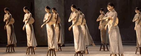 为了捕捉地道的上海韵味,她们深入街巷采风。韩真至今记得那个触动她的场景:“一位70多岁的老太太在弄堂里洗带鱼,她不急不慢、精细娴熟地忙着手里的活计。”这个瞬间让她们找到了上海气质的内核——在局促中保持的从容与体面。带着这样的感悟,排练厅里开始了漫长的打磨。演员们长时间坐在小板凳上,体验乘凉、挑米、生火等日常动作,所有行为语言仅靠一把蒲扇完成。“渐渐地我们发现,这段舞段不是靠‘跳’和‘美’来支撑的,而是真实生活里的‘烟火气’。”韩真如是说。这种对生活本真的追求,让《渔光曲》超越了单纯的舞蹈表演,成为一幅流动的生活画卷。
