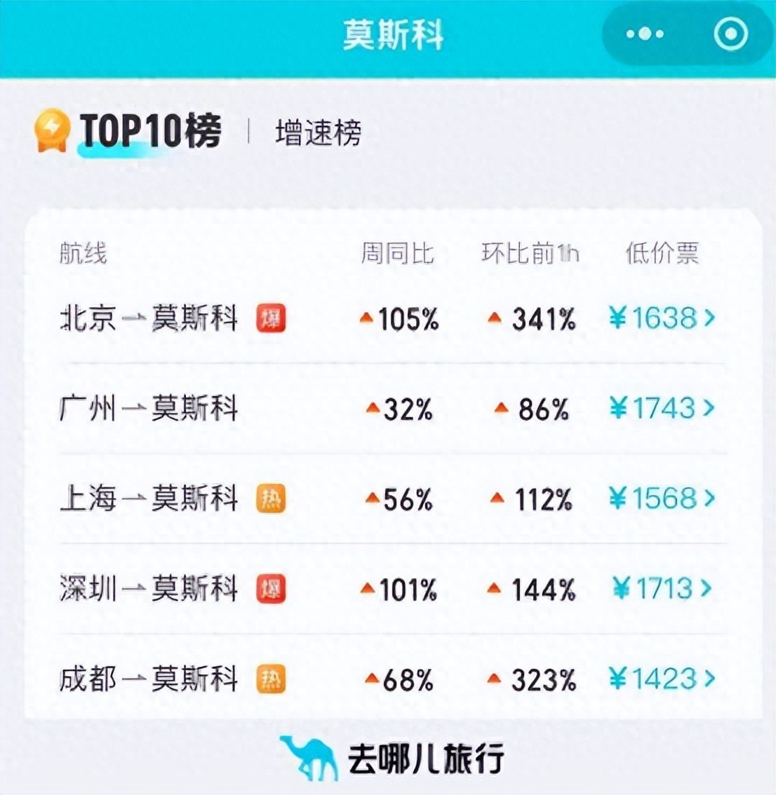 中国至圣彼得堡航线的搜索量同样显著上升。增速最快的出发地包括武汉、天津、乌鲁木齐、上海和广州。其中,武汉出发搜索量较上周增长14倍,天津增长5倍,乌鲁木齐增长4.5倍,上海至圣彼得堡航线一小时内增长2倍,较上周增长3倍。总体来看,旅游市场格局正经历快速调整。从日本市场的“降温”到泰国、马来西亚、俄罗斯等地的迅速升温,中国出境游市场展现出高度的灵活性和活力。来源:海报新闻
